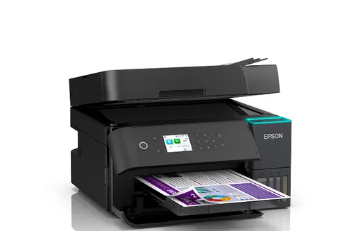 מדפסת EcoTank L6390 הזרקת דיו מדגם Epson EcoTank L6390 רב תכליתית עם Wi-Fi ו-AirPrint, מיכל דיו ADF, הדפסה דו-צדדית, סריקה, העתקה ופקס.